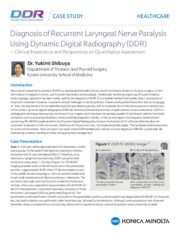DDR Case Study Recurrent Laryngeal Nerve Paralysis Resource Type: Case Study / Whitepaper Related Products: Dynamic Digital Radiography Last Updated: Tue, Oct 28 2025 Download