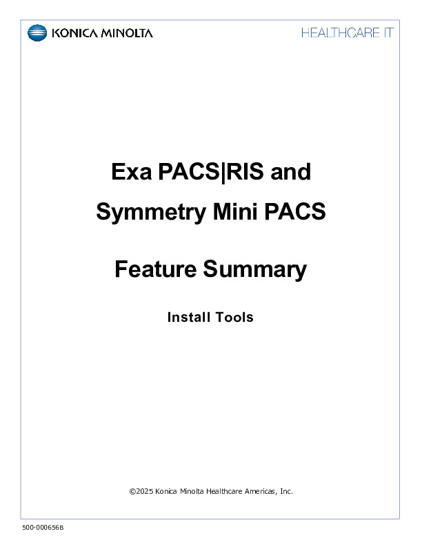 Install Tools Resource Type: PDF Related Products: Exa PACSExa RISSymmetry PACS Last Updated: Mon, Aug 7 2023 Download